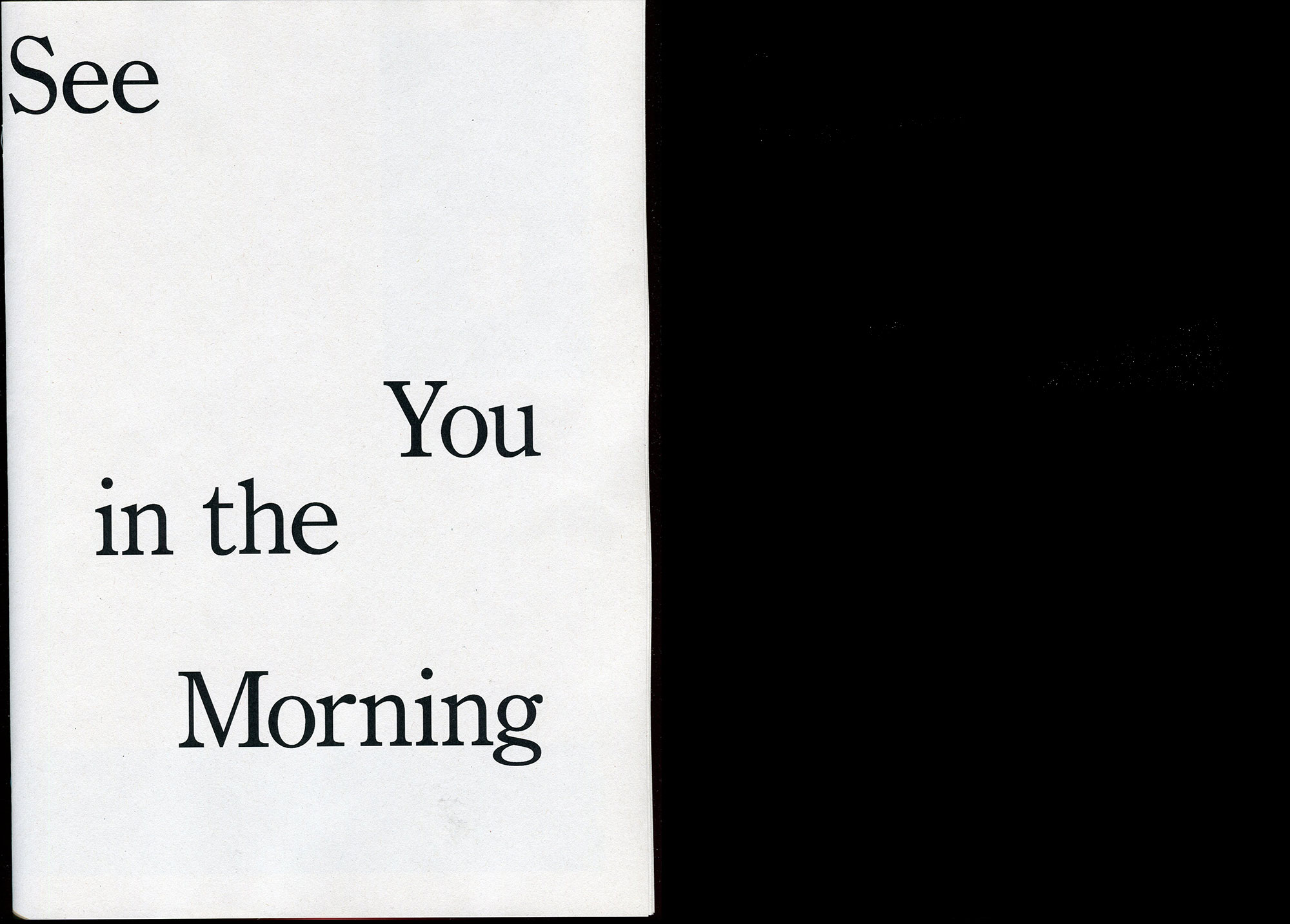 «See You in the Morning», 20 pages of black & white photographies, all taken during nighttime from the window of my flat. Experimenting with highly sensitive film, the photographies gained a very particular atmosphere, which is also expressed in the layout of the publication.